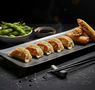 Start with edamame or gyoza—crunchy, savory snacks to begin your meal.